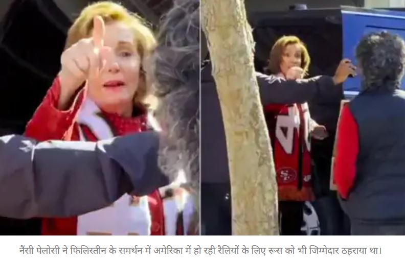 वीडियो में प्रदर्शनकारियों को पेलोसी को घेरते हुए देखा गया। पेलोसी अपनी कार में बैठने की कोशिश कर रही थीं। प्रदर्शनकारियों ने उन पर जवाब देने के लिए दबाव बनाने की कोशिश की। वहां डेमोक्रेटिक पार्टी के भी कुछ कार्यकर्ता इजराइल-हमास जंग में सीजफायर की अपील कर रहे थे। पेलोसी इससे पहले भी इन प्रदर्शनों को रूस और पुतिन से जोड़ चुकी हैं।