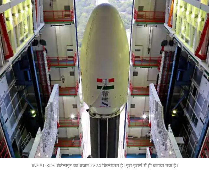 भारतीय अंतरिक्ष अनुसंधान संगठन (ISRO) ने शनिवार (17 फरवरी) को 10 साल तक मौसम की सटीक जानकारी देने वाले सैटेलाइट INSAT-3DS को लॉन्च किया। इसे श्रीहरिकोटा के सतीश धवन स्पेस सेंटर से शाम 5:35 बजे लॉन्च किया गया।