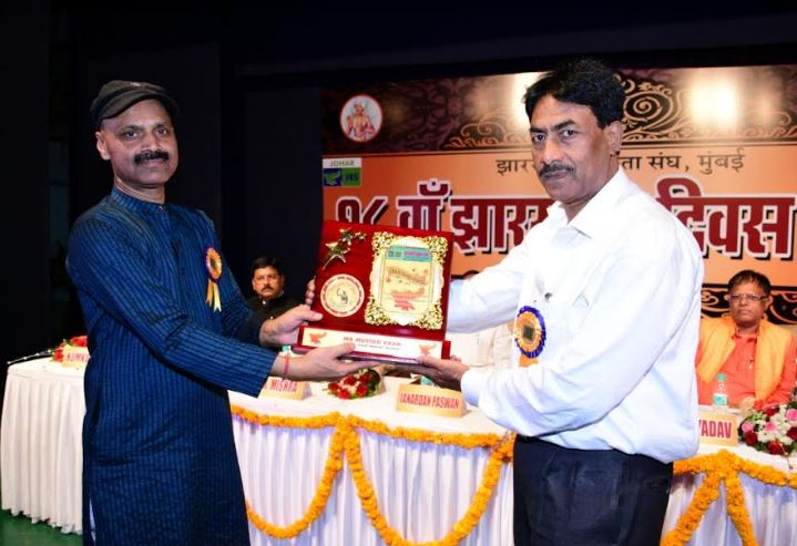 मुंबई। वरिष्ठ पत्रकार एवं हिंदी साप्ताहिक "जगत प्रहरी" के मुख्य संपादक मुश्ताक खान को झारखंड रत्न सम्मान से सम्मानित किया गया है. बांद्रा पश्चिम स्थित रंग शारदा ऑडिटोरियम में झारखंडी एकता संघ द्वारा आयोजित झारखंड प्रदेश के 18वें स्थापना दिवस मुश्ताक खान को संघ के केंद्रीय उपसचिव मनोज कुमार द्वारा झारखंड रत्न से सम्मानित किया गया।