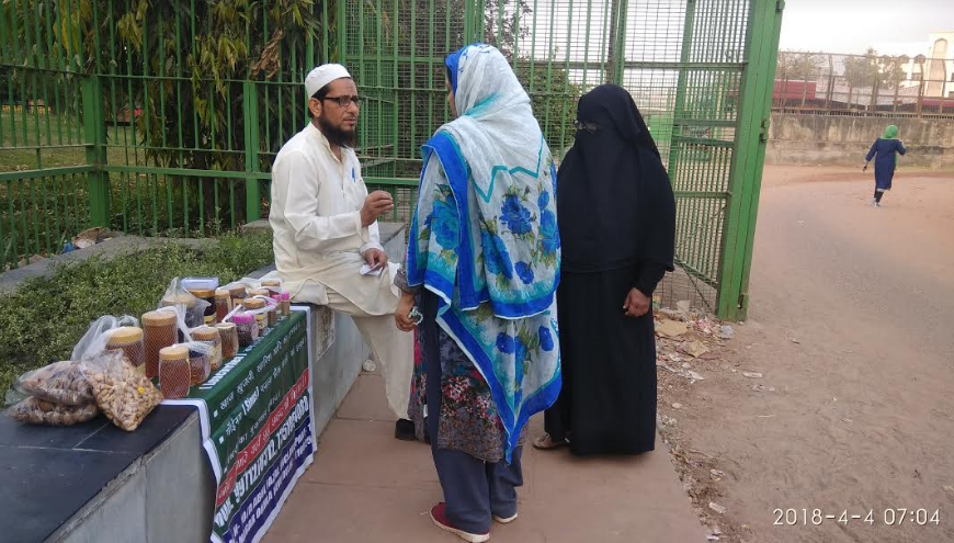 अगर आप सुबह ‘कालिंदी कुंज पार्क’ की मोर्निंग वाक पर हैं तो आप को बिलकुल सामने के रस्ते पर कोने में शहद की कुछ शीशियाँ, और ड्राई फ्रूट के पैकेट सजाकर मुस्कुराते एक महानुभाव नज़र आयें गे जो टहलने वालों से बात चीत करते देखे जा सकते हैं .