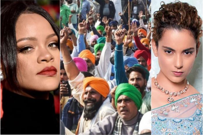 रिहाना के इस ट्वीट पर बॉलीवुड अभिनेत्री कंगना रनौत ने भड़कते हुए प्रदर्शनकारी किसानों को ‘आतंकवादी’ और रिहाना को ‘बेवकूफ’ करते हुए उन्हें चुप बैठने को कहा। कंगना रनौत ने अपने ट्वीट में लिखा, “कोई भी इनके बारे में बात इसलिए नहीं कर रहा क्योंकि ये किसान नहीं है। ये आतंकवादी हैं, जो भारत को तोड़ने की कोशिश कर रहे हैं। ताकि चीन हमारे कमजोर टूटे हुए राष्ट्र पर कब्जा कर सके और चाइनीस जैसी कॉलोनी बना सके। तुम शांत बैठो बेवकूफ, हम लोग तुम्हारे जैसे बेवकूफ नहीं हैं जो अपने देश को बेच दें।”