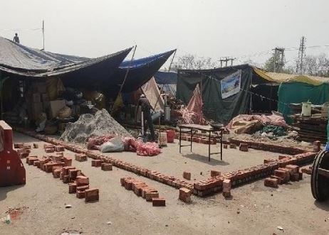 इन मकानों को बनाने को लेकर कोई मौसम का हवाला दे रहा है तो कोई बता रहा है कि जिन ट्रॉलियों में अब तक उनका आसरा था, उसको अब गांव भेज जा रहा है। टीकरी बॉर्डर पर साफ देखा जा सकता है कि जगह-जगह ईंटे जमाई जा रही हैं। दरवाजों के लिए चौखट लग चुकी है। ईंट के ऊपर ईंट रखने और दीवार के लिए मिट्टी का घोल तैयार हो रहा है। मजदूर भी खुद किसान हैं और मिस्त्री भी इनके बीच का ही है।