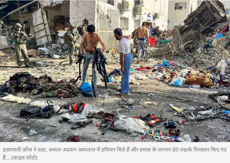 इज़रायली फ़ौज ने कहा कि उत्तरी ग़ाज़ा में चल रहे आखिरी सरकारी अस्पताल में उन्हें हथियार भी मिले हैं और उन्होंने अस्पताल से हमास के लगभग 80 लड़ाकों को गिरफ़्तार किया है.