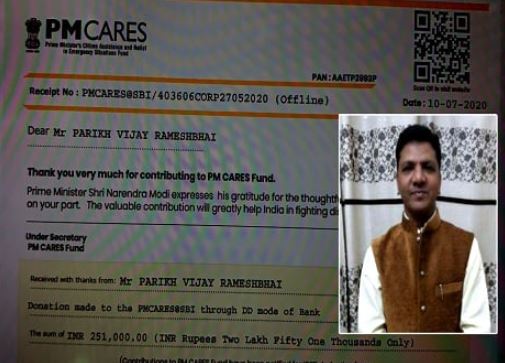 दरअसल अहमदाबाद के रमेशभाई विजय पारिख नाम के एक व्यक्ति का ट्वीट तेजी से वायरल हो रहा है। विजय पारिख मोदी सरकार समर्थक रहे हैं। उन्होंने कोरोना महामारी के दौरान अपनी मां को खो दिया है। लिहाजा दुखी होकर एक ट्वीट किया है जिसमें उन्होंने पीएम केयर्स में ढाई लाख रुपये दान करने का एक स्क्रीनशॉट भी लगाया हुआ है।
