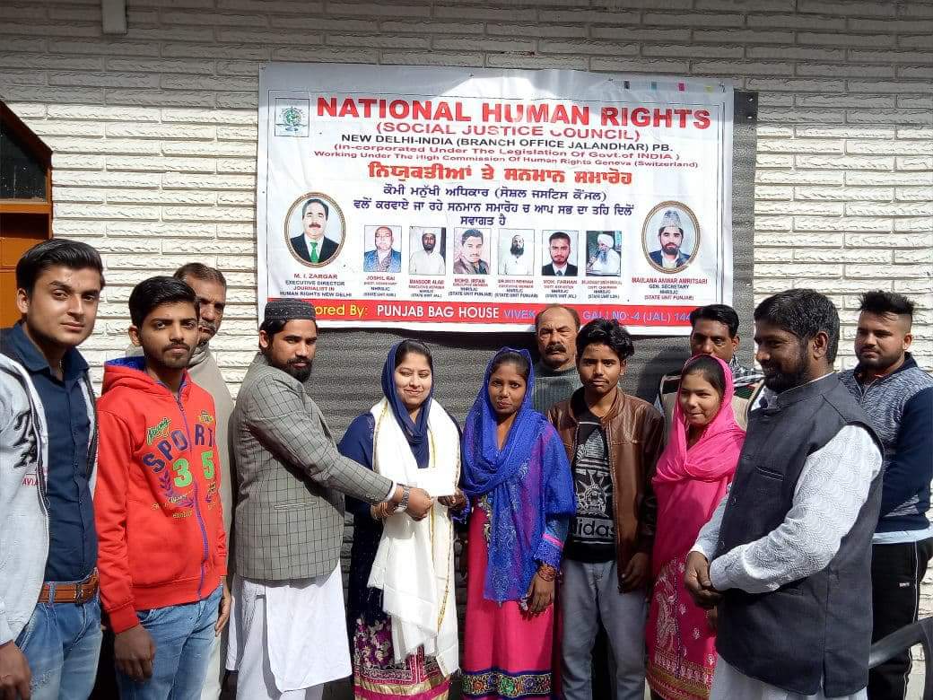 जालंधर:- नेशनल ह्यूमन राइट्स (सोशल जस्टिस कॉउन्सिल) द्वारा सम्मान समारोह का आयोजन विवेक नगर में पंजाब महासचिव मौलाना अनवर अमृतसरी के नेतृत्व में हुआ। इस प्रोग्राम में मुख्य अतिथि के तौर पर प्रधान मंसूर आलम के अलावा जिला जालंधर के समूह पदाधिकारियों के भाग लिया।