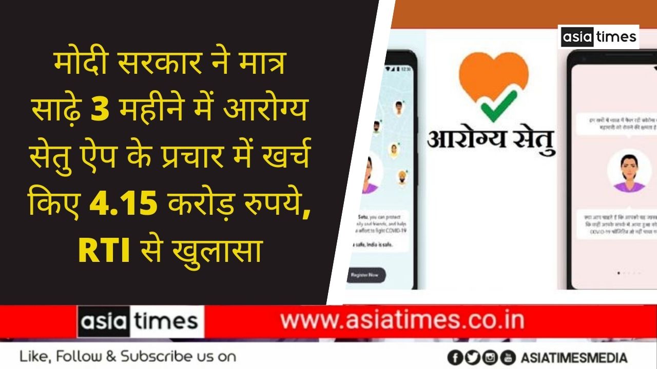 मोदी सरकार ने मात्र साढ़े 3 महीने में आरोग्य सेतु ऐप के प्रचार में खर्च किए 4.15 करोड़ रुपये