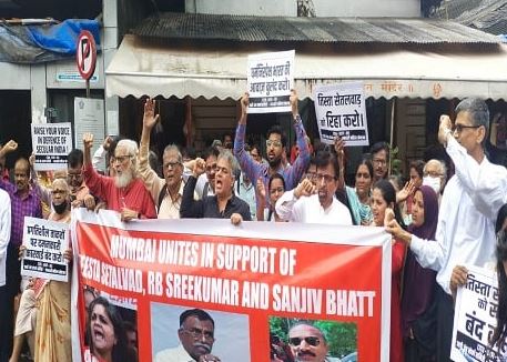 मुंबई में कार्यकर्ता तीस्ता सेतलवाड़, आरबी श्रीकुमार और संजीव भट्ट की तत्काल रिहाई की मांग को लेकर दादर रेलवे स्टेशन के बाहर जमा हुए। ट्रेड यूनियनवादियों सहित प्रदर्शनकारियों ने मांग की कि सत्तारूढ़ शासन अपनी शक्ति का दुरुपयोग बंद करे।