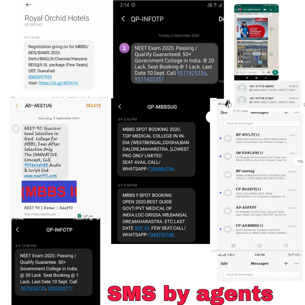 डेटा मिलते ही ये दलाल एक्टिव हो जाते हैं। वे कॉल, टेक्स्ट मैसेज, ईमेल, व्हाट्सएप्प मैसेज के ज़रिये स्टूडेंट्स से सम्पर्क करना शुरू कर देते हैं। ये दलाल कई प्रकार के दावे करते हैं। कुछ का कहना होता है कि वे शासकीय मेडिकल कॉलेज में दाखिला दिला देंगे, तो कुछ 50 से 70 लाख रुपये में प्राइवेट मेडिकल कॉलेज में दाखिला दिलाने की बात करते हैं।
