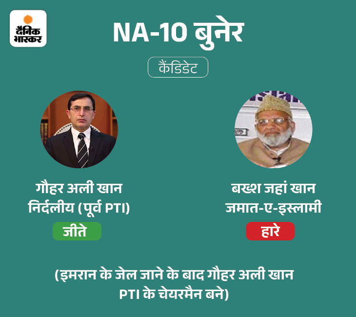 बुनेर सीट से इमरान खान के वकील और PTI के चेयरमैन गौहर अली खान जीत गए हैं। इमरान के जेल जाने के बाद गौहर अली खान को 2 दिसंबर को PTI का चेयरमैन बना दिया गया था।