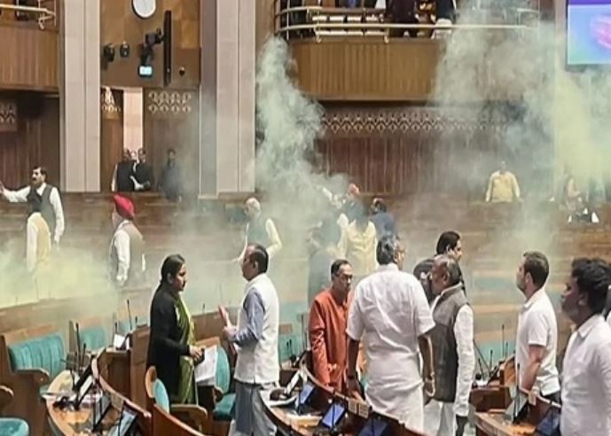 गत 13 दिसंबर 2023 को दो युवक संसद भवन की सुरक्षा व्यवस्था को चकमा देते हुए दर्शक दीर्घा से सदन के अंदर कूद गए, जहां उन्होंने पीले रंग की एक गैस हवा में छोड़ी. इससे सदन में हंगामा मच गया. पूरी योजना चार युवाओं द्वारा बनाई गई थी जो बेरोजगारी की ओर देश का ध्यान आकर्षित करना चाहते थे. इन युवाओं में से एक ऑटो रिक्शा चालक और एक किसान था, एक सरकारी नौकरी हासिल करने के लिए परीक्षाओं की तैयारी कर रहा था और एक दैनिक वेतनभोगी कर्मचारी था. इन सभी को कर्नाटक से निर्वाचित सांसद प्रताप सिम्हा द्वारा दर्शक दीर्घा के पास उपलब्ध करवाए गए थे. इनमें से दो, जो भवन के अंदर घुसे थे, ने अपने जूतों में गैस के कैन छुपाए हुए थे. सन् 2001 में इसी दिन (13 दिसंबर) संसद पर आतंकी हमला हुआ था और युवाओं के सदन में कूदने से पहले सांसदों ने उस हमले में शहीद हुए लोगों को श्रद्धांजलि दी थी.