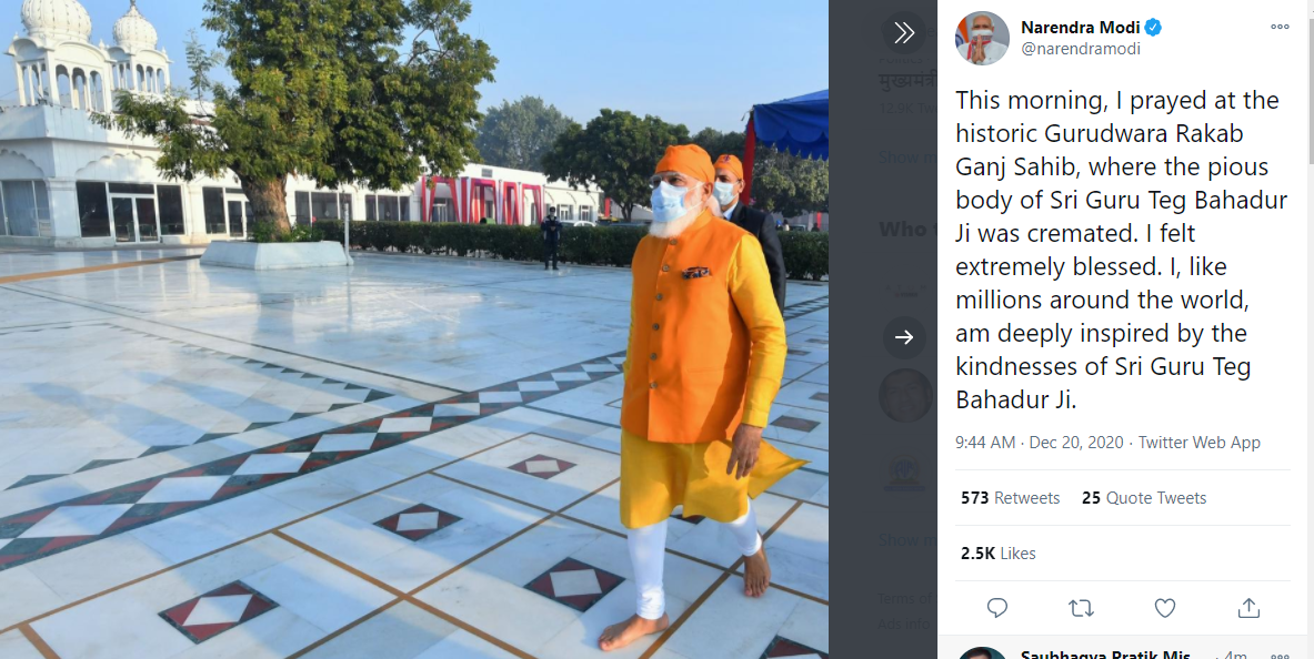 सुबह-सुबह अचानक गुरुद्वारा रकाबगंज पहुंचे PM मोदी, गुरु तेगबहादुर को किया नमन
