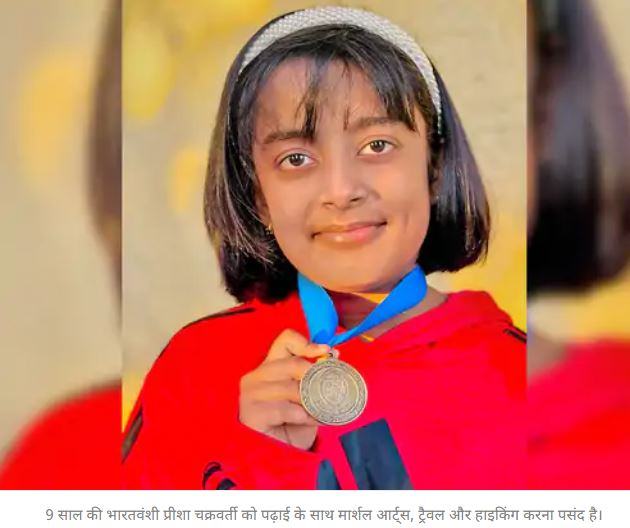 अमेरिका में रहने वाली 9 साल की भारतवंशी प्रीशा चक्रवर्ती दुनिया के सबसे प्रतिभाशाली छात्रों की लिस्ट में शामिल हो गई हैं। उन्हें यह सम्मान जॉन होप्किंस सेंटर फिर टैलेंटेड यूथ (CTY) ने दिया है। प्रीशा कैलिफोर्निया वॉर्म स्प्रिंग एलिमेंट्री स्कूल में पढ़ती है।