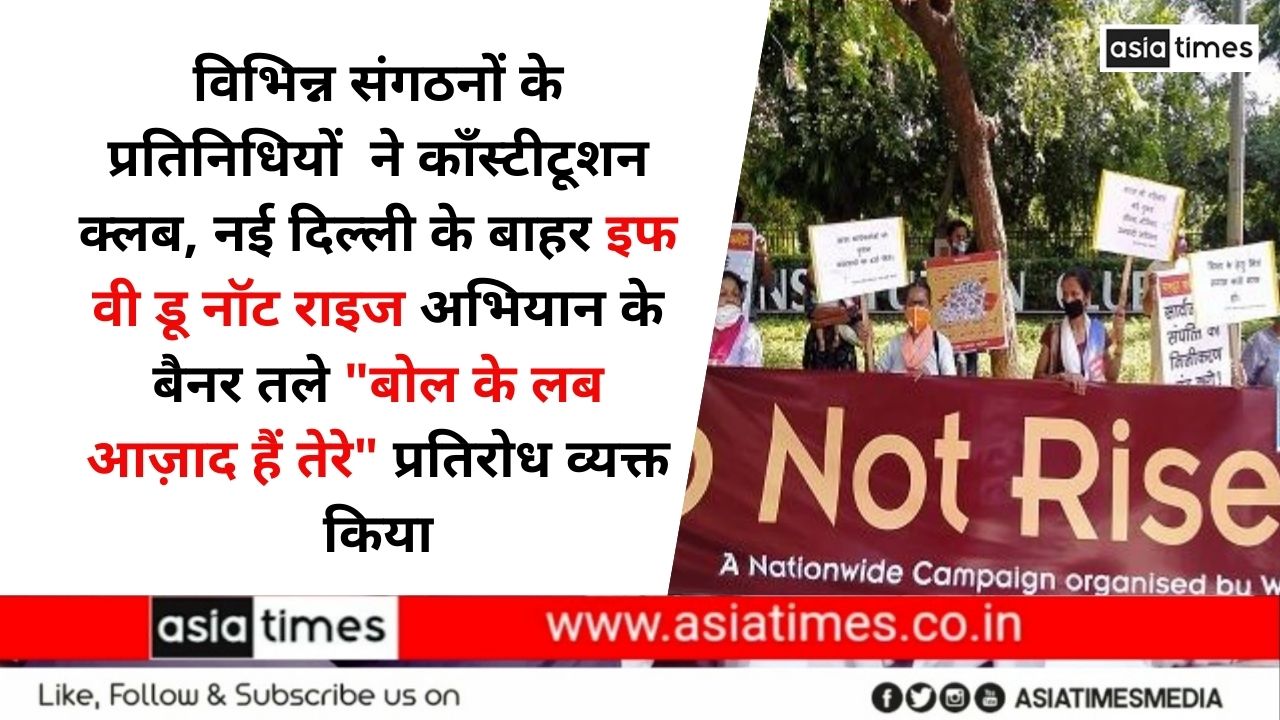 विभिन्न संगठनों के प्रतिनिधियों ने कॉंस्टीटूशन क्लब, नई दिल्ली के बाहर इफ वी डू नॉट राइज अभियान के बैनर तले "बोल के लब आज़ाद हैं तेरे" प्रतिरोध व्यक्त किया