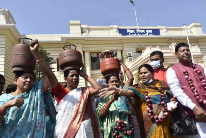 राजद ने अपने ट्वीट में लिखा, “घरेलू गैस, पेट्रोल डीजल की बढ़ती क़ीमतों और रिकॉर्ड तोड़ कमरतोड़ महंगाई के विरुद्ध राजद की महिला विधायकों ने आज बिहार विधानसभा में सिर पर गैस सिलेंडर रखकर विरोध प्रकट किया।”