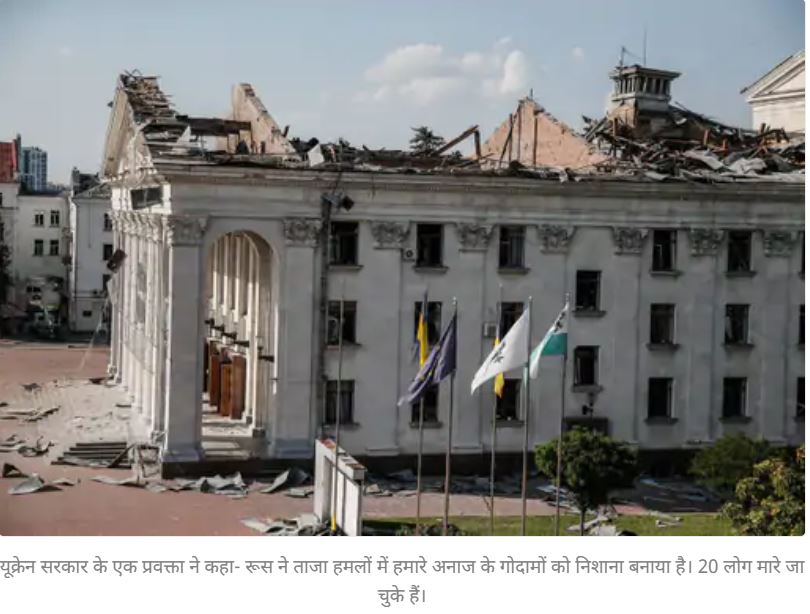 यूक्रेन सरकार के एक प्रवक्ता ने कहा- रूस ने ताजा हमलों में हमारे अनाज के गोदामों को निशाना बनाया है। 20 लोग मारे जा चुके हैं।