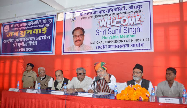 जोधपुर 21 नवम्बर। प्रधानमंत्री नरेन्द्र मोदी दृढ संकल्प वाले व्यक्ति है और उनका मानना है कि भारत को श्रेष्ठ व समृद्ध बनाने के लिए सभी समुदायों का योगदान ज़रूरी है। ये कहना है, राष्ट्रीय अल्पसंख्यक आयोग के माननीय सदस्य सुनील सिंघी का। वे मारवाड़ मुस्लिम एज्यूकेशनल एण्ड वेलफेयर सोसायटी के अधीन संचालित गंगाणा रोड बुझावड स्थित मौलाना आज़ाद यूनिवर्सिटी में मंगलवार को आयोजित ‘संवाद एवं जनसुनवाई कार्यक्रम‘ में बतौर मुख्य वक्ता बोल रहे थे।