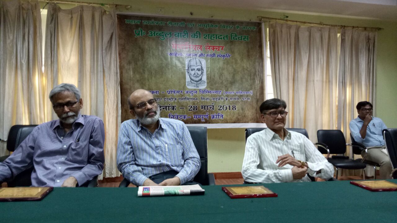 28 मार्च 1947 को राजनीतिक प्रतिद्वंदियों द्वारा शहीद कर दिए गए महान स्वतंत्रता सेनानी, बड़े मजदूर नेता, बिहार प्रदेश कांग्रेस कमिटी के तात्कालीन अध्यक्ष प्रोफेसर अब्दुल बारी की शहादत दिवस के अवसर पर आज बिहार इंडस्ट्रियल एसोसिएशन के सेमिनार हॉल में मनाई गई ।
