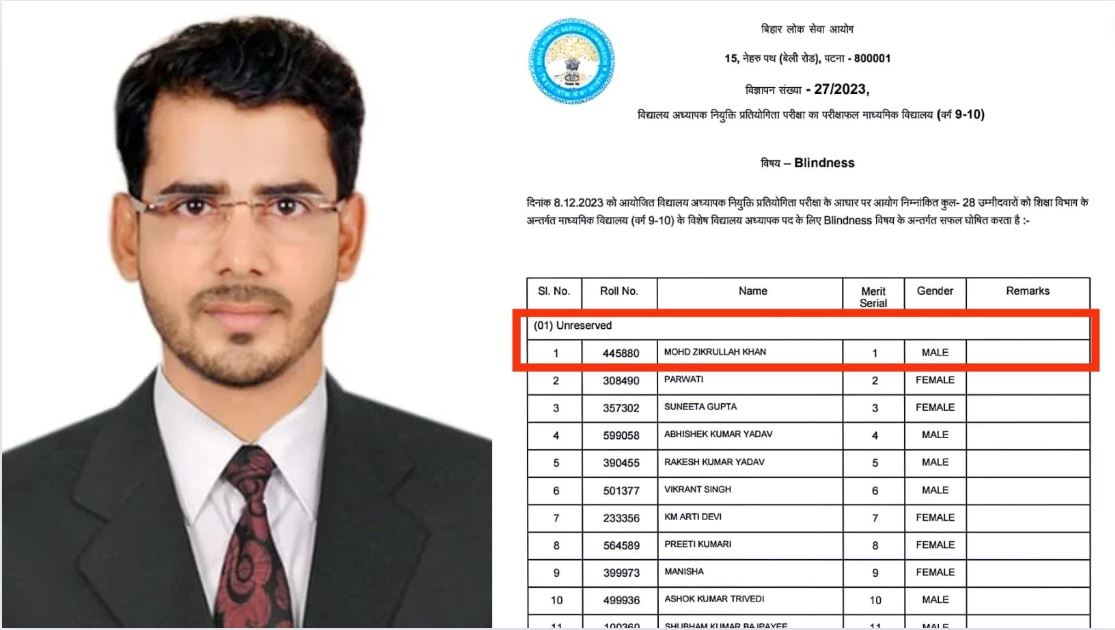 New Delhi, May 11, 2024 – A scholarship recipient from Vision 2026 has clinched the first position in the BPSC Teachers Recruitment Exam. Muhammad Zikrullah Khan, hailing from Saharsa district in Bihar, emerged as the frontrunner in this prestigious examination.
