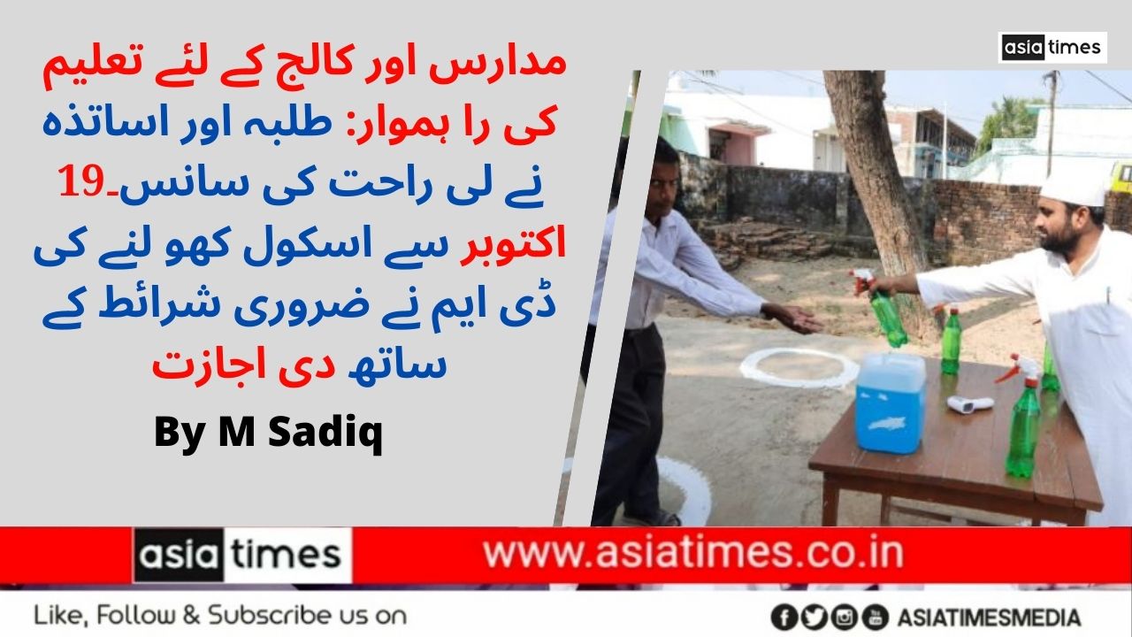 ضلع میں مدارس اور کالج کے لئے تعلیم کی را ہموار: طلبہ اور اساتذہ نے لی راحت کی سانس۔19 اکتوبر سے اسکول کھو لنے کی ڈی ایم نے ضروری شرائط کے ساتھ دی اجازت
