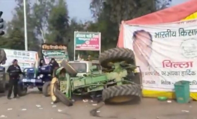 किसान ट्रैक्टर रैली: चिल्ला बॉर्डर पर स्टंट करते हुए किसानों का ट्रैक्टर पलटा, कैमरे में कैद हुआ हादसा 26, Jan, 2021