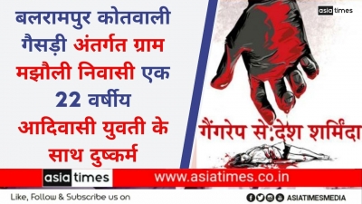 बलरामपुर कोतवाली गैसड़ी अंतर्गत ग्राम मझौली निवासी एक 22 वर्षीय आदिवासी युवती के साथ दुष्कर्म 01, Oct, 2020