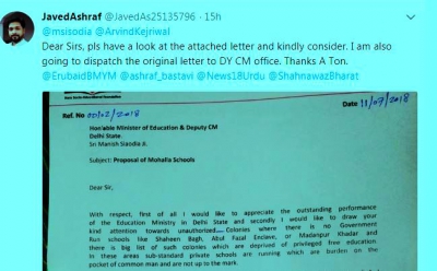 जामिया नगर की NGO ने मनीष सिसोदिया को लिखा पत्र मोहल्ला क्लीनिक की तर्ज़ पर मोहल्ला स्कूल खोलने की मांग की 12, Jul, 2018