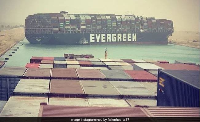 मंगलवार को पोस्ट की गई एक तस्वीर में देखा जा सकता है कि ताइवान के स्वामित्व वाला एमवी एवरग्रीन, 400 मीटर (1,300 फुट) लम्बा और 59 मीटर चौड़ा जहाज़, आड़ा हो गया है, और जलमार्ग पर पूरा यातायात रोक दिया है. जहाज़ की ऑपरेटिंग कंपनी एवरग्रीन मरीन कॉर्प ने समाचार एजेंसी AFP को बताया, "संभवतः हवा के झोंके से टकराने की वजह से कन्टेनर दुर्घटनावश ज़मीन में धंस गया..."