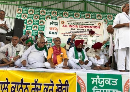 राष्ट्रीय राजधानी की सीमाओं पर किसानों के विरोध के नौ महीने पूरे होने पर, संयुक्त किसान मोर्चा (SKM) ने 26 अगस्त, 2021 की सुबह सिंघू बॉर्डर पर अपना पहला अखिल भारतीय सम्मेलन आयोजित किया। लगभग 25 राज्यों से 2000 से अधिक पुरुष और महिला किसान प्रतिनिधि बैठक के लिए पहुंचे, जो 27 अगस्त को दोपहर तक जारी रहेगी। इसके अलावा, किसानों के संघर्ष की गहनता पर चर्चा करने के लिए श्रमिकों, खेत मजदूरों, महिलाओं, युवाओं, छात्रों, दलितों और आदिवासी संगठनों के नेताओं ने भी सम्मेलन में भाग लिया।