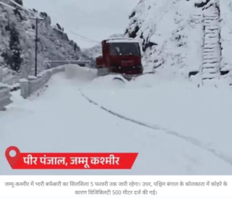 - मौसम विभाग के मुताबिक, वेस्टर्न डिस्टर्बेंस के कारण उत्तर भारत में ठंड का असर बरकरार रहेगा। जम्मू-कश्मीर, हिमाचल प्रदेश, उत्तराखंड में बर्फबारी 6 फरवरी तक जारी रहेगी।