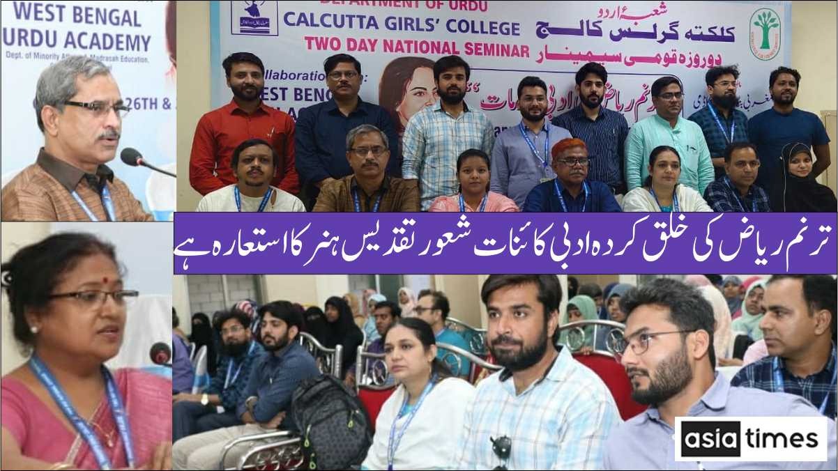 کلکتہ : گرلس کالج, شعبہ اردو کے زیر اہتمام مغربی بنگال اردو اکادمی کے مالی تعاون سے دو روزہ قومی سیمینار کا اہتمام 26 مارچ 2022 کو کالج کے ہال میں کیا گیا۔ افتتاحی اجلاس کی صدارت محترمہ نزہت زینب صاحبہ (سکریٹری، مغربی بنگال اردو اکادمی) نے کی جبکہ مہمان خصوصی کے طور پر پروفیسر مویتری بھٹاچاریہ (ممبر، گورننگ باڈی) نے شرکت کی۔ نظامت کا فریضہ ڈاکٹر نعیم انیس نے ادا کیا۔ اپنے خیر مقدمی کلمات میں کالج کی پرنسپل ڈاکٹر ستیہ اپادھیاے نے مہمانان کا خیر مقدم کرتے ہوءے ترنم ریاض کے حوالے سے کہا کہ وہ اردو ادب کی ایک جینوین ادیبہ تھیں اور انہوں نے نسوانی مساءیل کو اپنی تحریروں میں بخوبی اجاگر کیا۔ محترمہ نزہت زینب نے اپنی مختصر تقریر میں ترنم ریاض کی ادبی خدمات پر منعقد ہونے والے اس سیمینار پر کلکتہ گرلس کالج بالخصوص شعبہ اردو کے روح رواں ڈاکٹر نعیم انیس کو مبارکباد دی اور اس بات پر اپنی مسرت کا اظہار کیا کہ اردو اکادمی کے مالی تعاون سے کلکتہ میں منعقد ہونے والا یہ پہلا سیمینار ہے۔