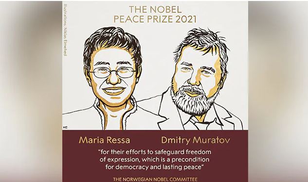 इस बार नोबल शांति पुरस्कार की घोषणा की जा चुकी है. इतिहास में पहली बार पत्रकार मारिया रेसा (Maria Ressa), दमित्री मुर्तोव (Dmitry Muratov) को शांति के लिए इस साल का नोबेल पीस प्राइज 2021 (Nobel Peace Prize) दिया गया है. इससे पहले कभी भी किसी पत्रकार को ये सम्मान प्राप्त नहीं हुआ है. यह सम्मान अभिव्यक्ति की स्वतंत्रता की रक्षा के लिए उनके प्रयास को देखते हुए दिया गया है. सोशल मीडिया पर इसकी चर्चा हो रही है. लोग दोनों पत्रकार को सलाम कर रहे हैं.