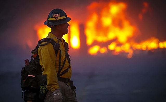 आग एक शुष्क परिदृश्य में भड़की थी. यह गुरुवार को 100 मील (160 किलोमीटर) प्रति घंटे से अधिक की रफ्तार से चलने वाली हवाओं के जरिये फैल गई.