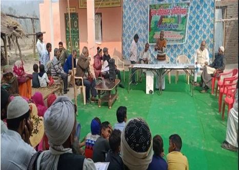 अखिल भारतीय वन जन श्रमजीवी यूनियन की ओर से 14 फरवरी को कालूवाला टोंगिया में वनटांगिया ग्रामीणों और वन गुर्जर समुदाय को वन भूमि पर वनाधिकार कानून के तहत सामुदायिक दावे फार्म भरने को प्रशिक्षण कार्यक्रम का आयोजन किया गया। बताया कि वनाधिकार कानून, ग्राम सभा क्षेत्र में स्थित तालाब-पोखर, सड़क, खुले स्थान, चारागाह आदि के साथ आजीविका के लिए लघु वन उपज पर सामुहिक हक प्रदान करता हैं। इसी से कार्यक्रम में यूनियन के संगठन सचिव मुन्नीलाल व वनाधिकार एक्सपर्ट अनिता एडवोकेट द्वारा गांव-वार सामुदायिक दावे भरने की प्रक्रिया ग्रामीणों को समझाई गईं और जल्द ही ग्राम सभा के नजरी नक्शा, लघु वन उपज आदि वन संपत्तियों को सूचीबद्ध कर, वर्किंग प्लान आदि के साथ सामुदायिक दावा फार्म भरने व एसडीएम की अध्यक्षता वाली उपखण्डीय समिति के समक्ष प्रस्तुत करने पर सहमति बनी। साथ ही निरस्त दावे फ़ार्मो के निस्तारण में देरी पर चिंता जताई गई।