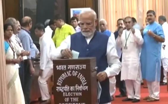 देश का 15वां राष्ट्रपति चुनने के लिए सोमवार सुबह 10 बजे शुरू हुई मतदान प्रक्रिया में प्रधानमंत्री नरेंद्र मोदी ने संसद परिसर में वोट डाला. उनके बाद मंत्री तथा सांसद भी मतदान के लिए अपनी बारी का इंतजार करते दिखे. संसद के दोनों सदनों के सदस्यों के अतिरिक्त राज्यों की विधानसभाओं के निर्वाचित प्रतिनिधि, यानी विधायक भी राष्ट्रपति के चुनाव के लिए मतदान करते हैं.