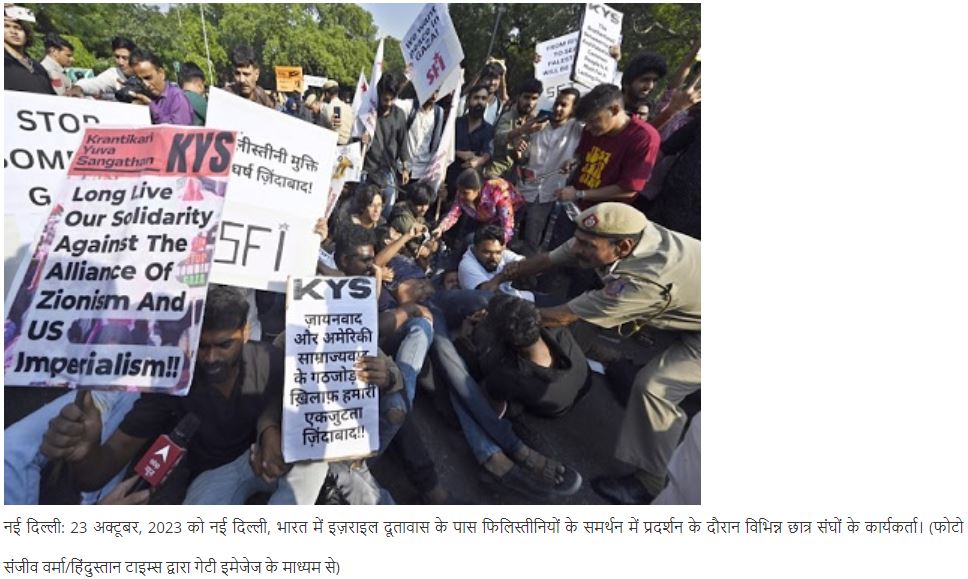 फिलिस्तीन के लोगों के खिलाफ इस गंभीर अन्यायपूर्ण और अमानवीय युद्ध के खिलाफ विरोध करने के अपने अधिकार का प्रयोग करने वाले भारतीय नागरिकों को देश भर में उनके युद्ध-विरोधी विरोध प्रदर्शनों के लिए विरोध प्रदर्शन की अनुमति से वंचित किया जा रहा है, गैरकानूनी तरीके से हिरासत में लिया गया और मनमाने ढंग से गिरफ्तार किया गया और अपराधी बनाया गया! इस बीच, इजरायल समर्थक और युद्ध समर्थक आवाजों को विरोध करने के साथ-साथ सोशल मीडिया पर गलत सूचना फैलाने की पूरी छूट है। जवाबी आवाज़ प्रदान करने में विरोध की भूमिका तब और भी महत्वपूर्ण हो जाती है जब हम समाचार मीडिया की घृणित भूमिका देखते हैं जो पक्षपातपूर्ण रिपोर्टिंग में लगी हुई है जो सभी गज़ावासियों को अमानवीय बना रही है। हम शांतिपूर्ण विरोध के अहिंसक लोकतांत्रिक रूपों की कार्रवाइयों को चुप कराने में भारतीय राज्य की मनमानी और खुले तौर पर पक्षपातपूर्ण कार्रवाई की निंदा करते हैं, जो नागरिकों के स्वतंत्र भाषण, सभा और संघ के मौलिक अधिकार का उल्लंघन करता है।