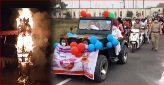 रामपुर: महिलाओं ने निकाली स्कूटी रैली, किया रावण का दहन