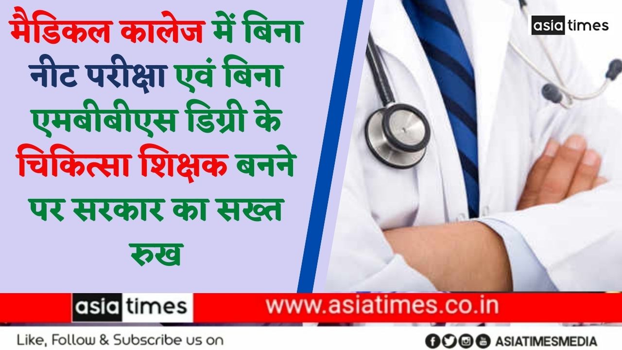 मैडिकल कालेज में बिना नीट परीक्षा एवं बिना एमबीबीएस डिग्री के चिकित्सा शिक्षक बनने पर सरकार का सख्त रुख