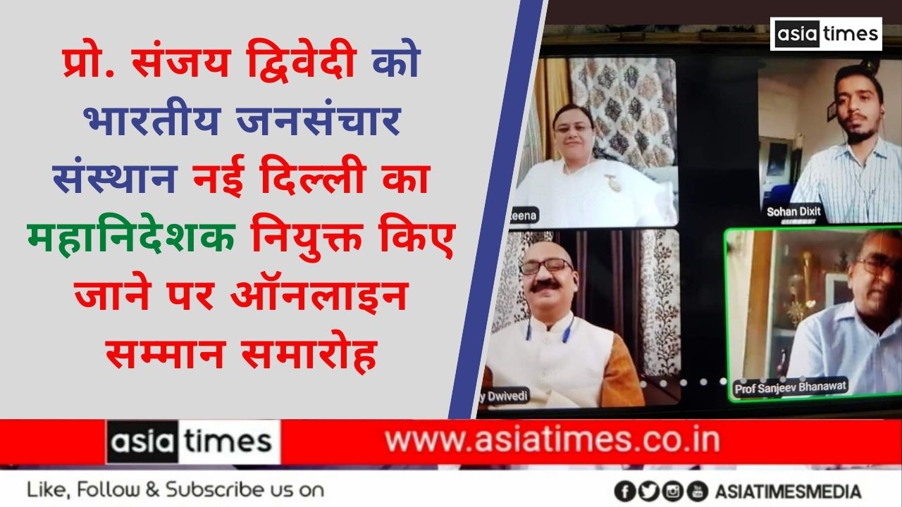 नई दिल्ली (एशिया टाइम्स ) मूल्यानुगत मीडिया अभिक्रम समिति के अध्यक्ष प्रो. संजय द्विवेदी को भारतीय जनसंचार संस्थान नई दिल्ली का महानिदेशक नियुक्त किए जाने पर समिति की ओर से ऑनलाइन सम्मान समारोह आयोजित किया गया।
