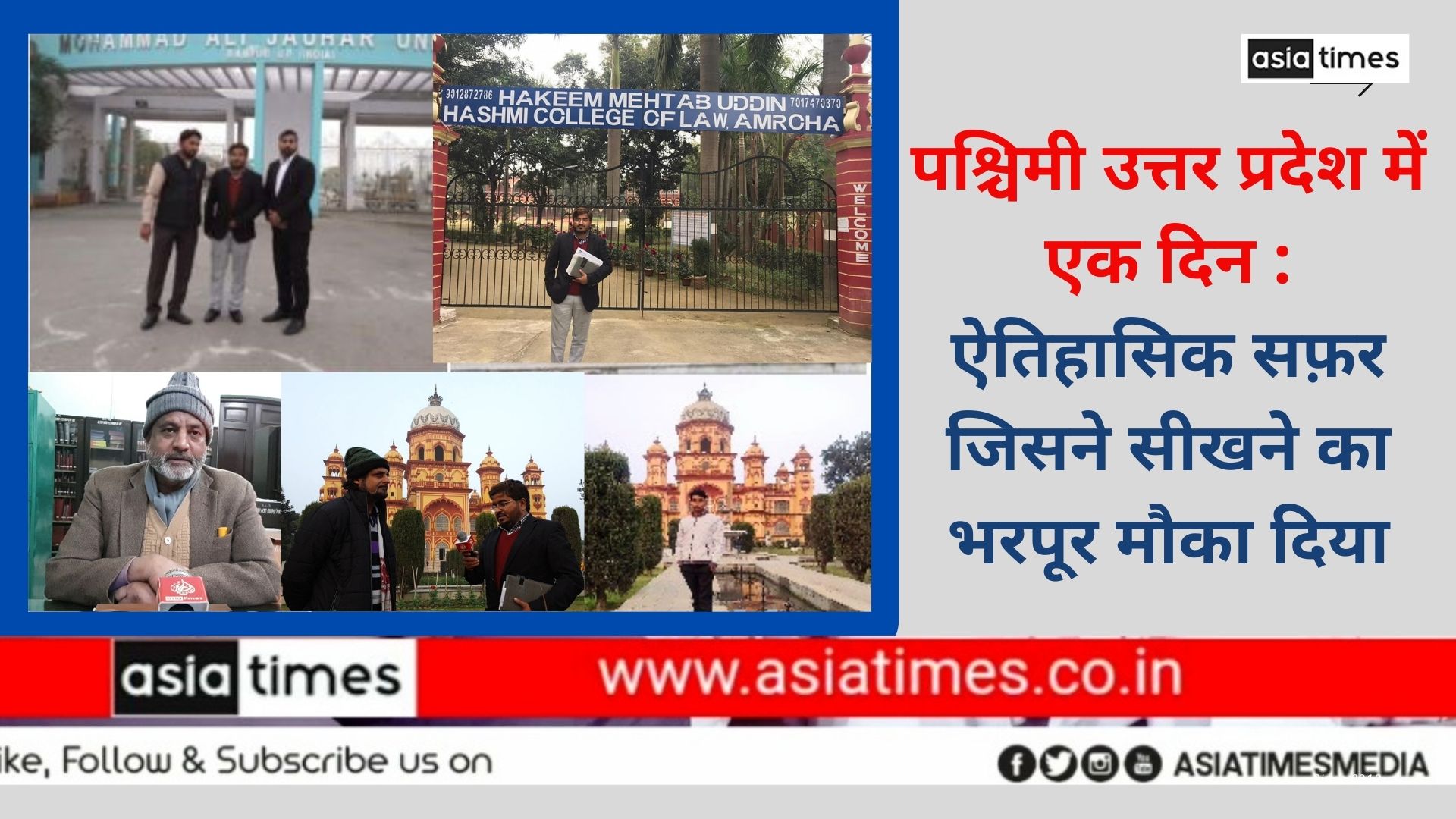 नई दिल्ली : (एशिया टाइम्स /अशरफ अली बस्तावी की विशेष रिपोर्ट )11 जनवरी का दिन मेरे लिए कई मानों में अहम रहा , ग्रेट इंडिया वेलफेयर फाउंडेशन के चेयरमैन नूरुल्लाह खान , प्राइम इंडिया वेलफेयर फाउंडेशन के चेयरमैन ओबैद खान जैसे इल्म दोस्त कीमती दोस्तों के हमराह पश्चिमी उत्तर प्रदेश के एजुकेशनल टूर पर निकलना हुआ .