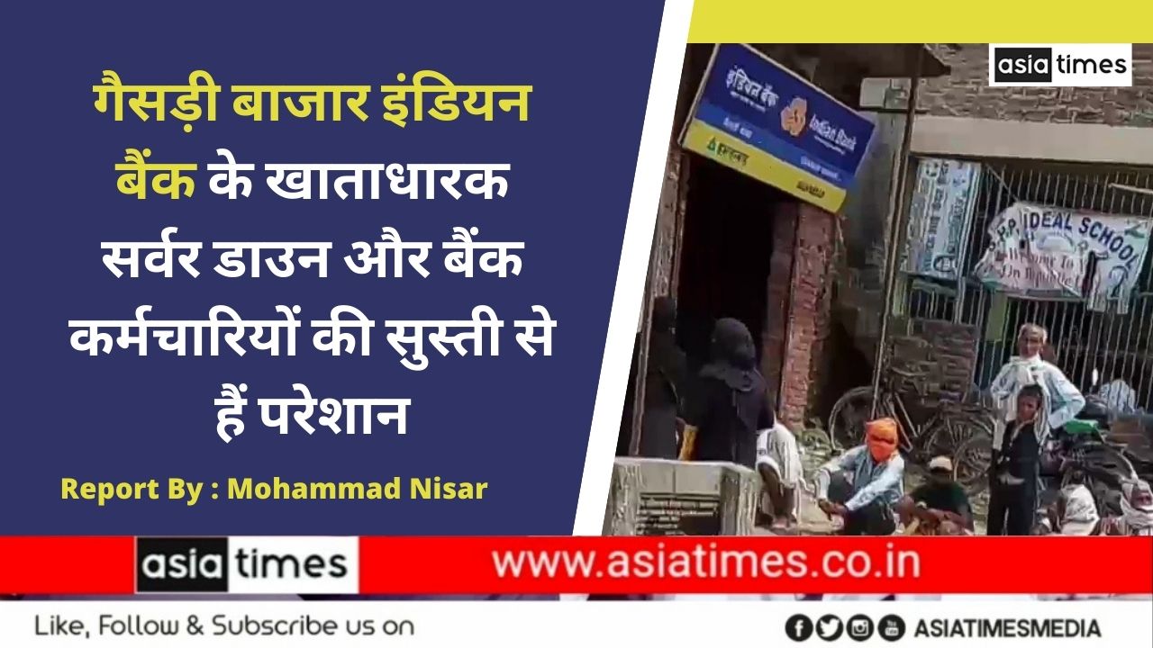 गैसड़ी बाजार इंडियन बैंक के खाताधारक सर्वर डाउन और बैंक कर्मचारियों की सुस्ती से हैं परेशान