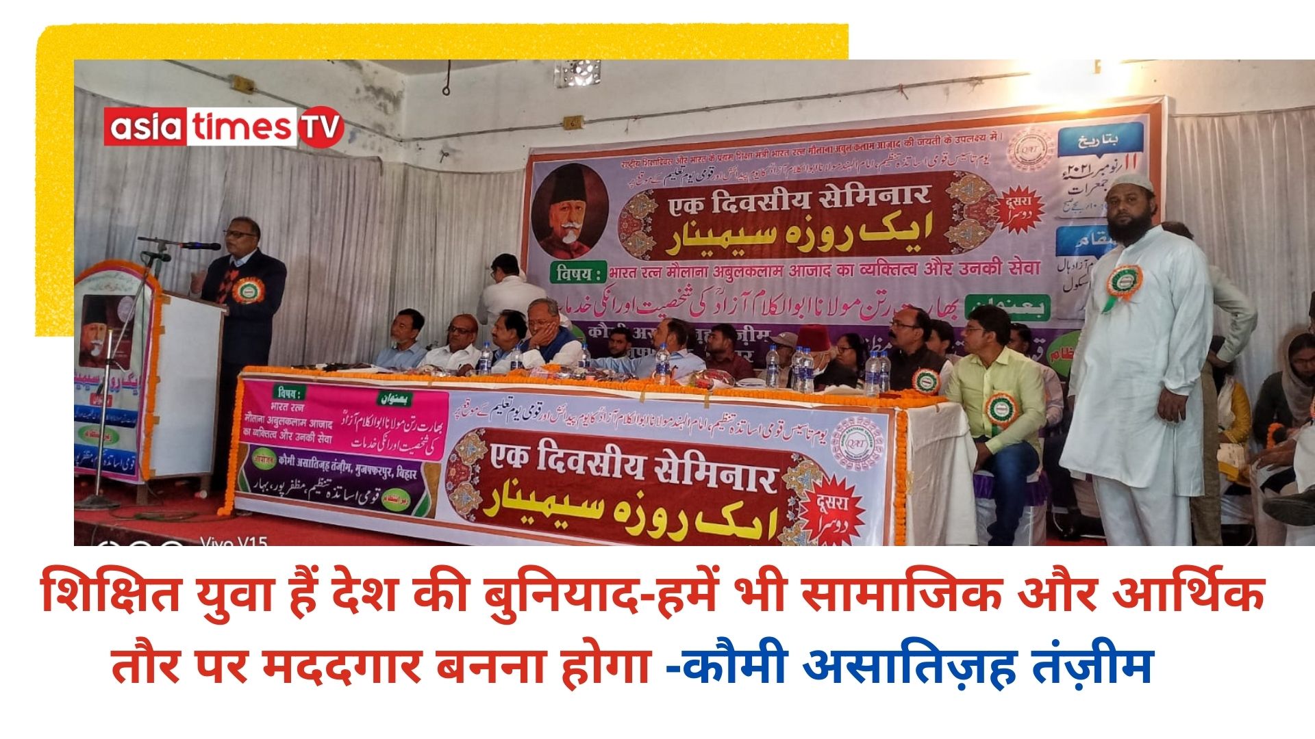 मुजफ्फरपुर:आजाद भारत के प्रथम शिक्षा मंत्री भारत रत्न अबुल कलाम आजाद के जयंती व राष्ट्रीय शिक्षा दिवस के अवसर पर एक दिवसीय सेमिनार का आयोजन शहर के आबेदा हाई स्कूल में किया गया,सेमिनार का आयोजन आजाद हौल में क़ौमी आसातिज़ह तनज़ीम दवारा किया गया जिसकी अध्यक्षता तंज़ीम के परदेश अधयक्ष ताजुल आरफीन ने की.