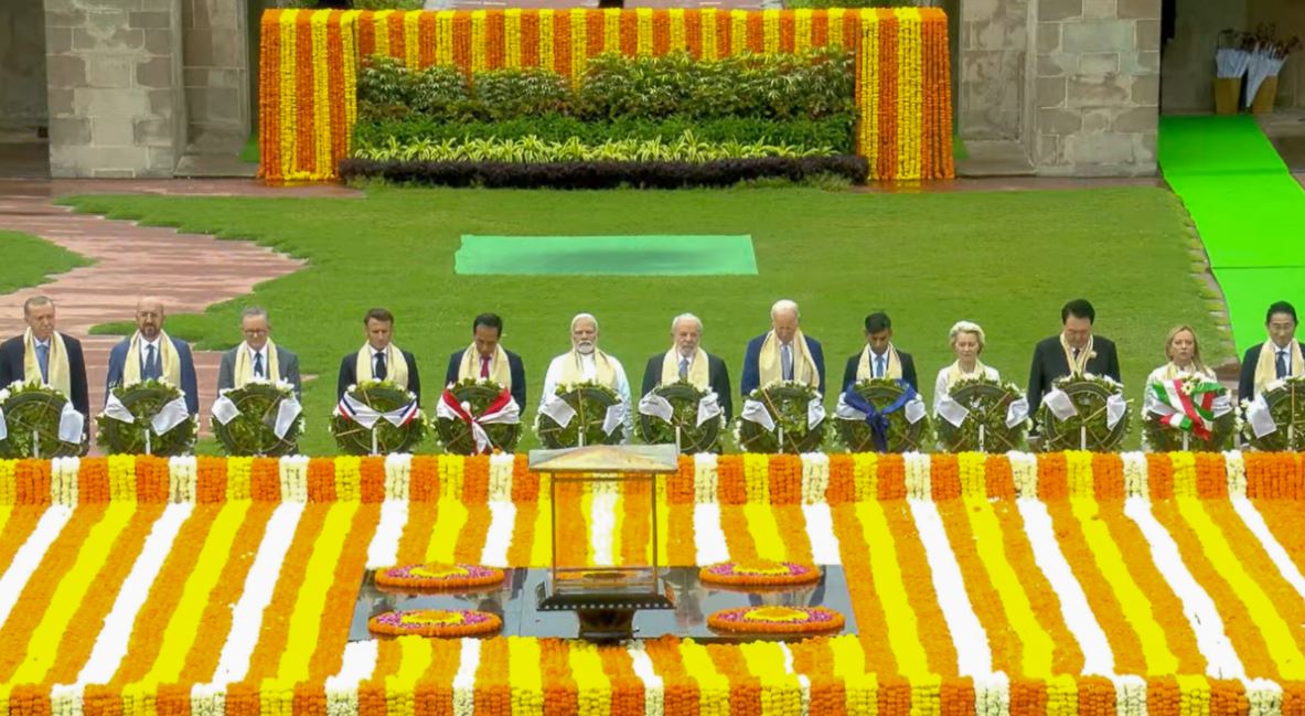 महात्मा गांधी को श्रद्धांजलि अर्पित करने के लिए राजघाट पहुंचे जी20 नेता