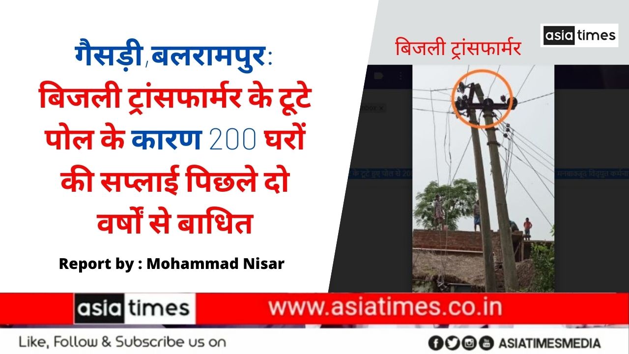 गैसड़ी,बलरामपुर: बिजली ट्रांसफार्मर के टूटे पोल के कारण 200 घरों की सप्लाई पिछले दो वर्षों से बाधित