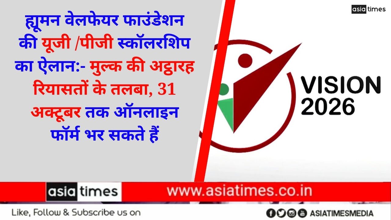 ह्यूमन वेलफेयर फाउंडेशन की यूजी पीजी स्कॉलरशिप का ऐलान:- मुल्क की अट्ठारह रियासतों के तलबा, 31 अक्टूबर तक ऑनलाइन फॉर्म भर सकते हैं
