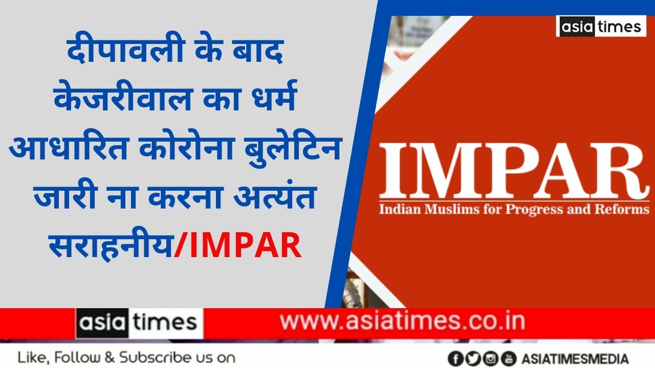 दीपावली के बाद केजरीवाल का धर्म आधारित कोरोना बुलेटिन जारी ना करना अत्यंत सराहनीय/IMPAR