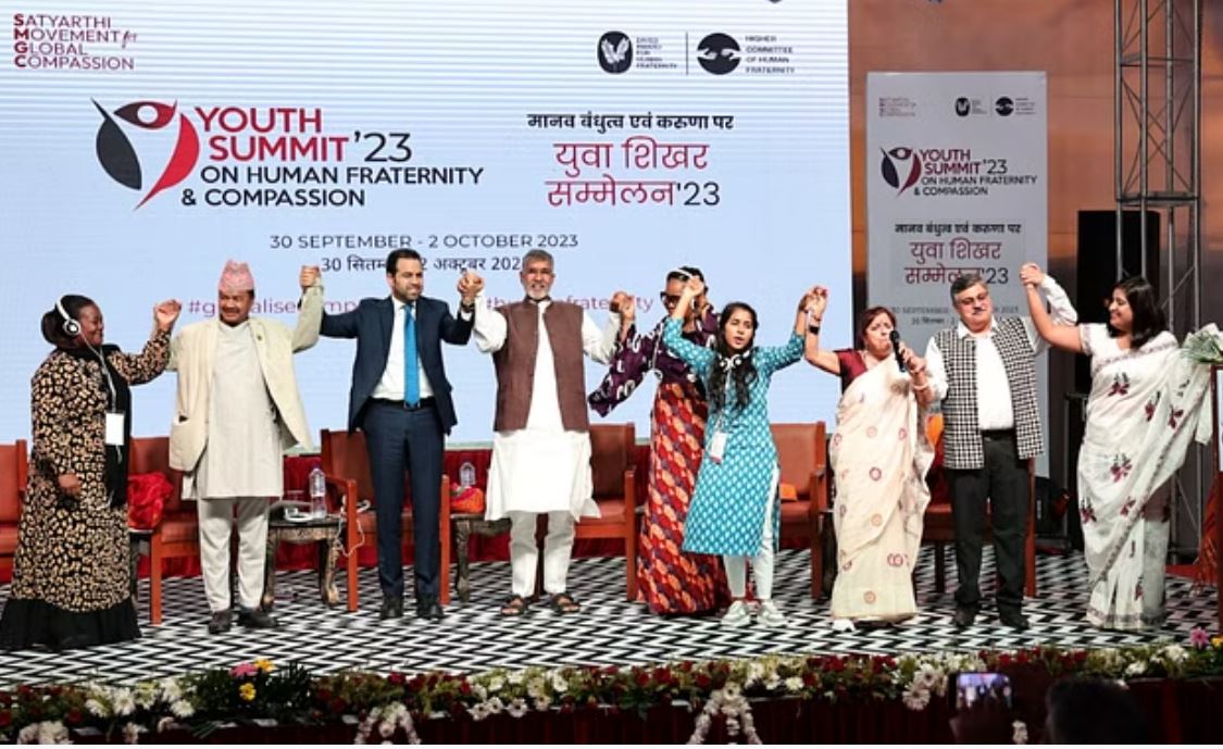 सत्यार्थी मूवमेंट फॉर ग्लोबल कम्पैशन (एसएमजीसी) ने शनिवार को विराटनगर, जयपुर में अपने पहले युवा शिखर सम्मेलन "यूथ समिट फॉर ह्यूमन फ्रटर्निटी एंड कम्पैशन" का उद्घाटन करते हुए दुनिया भर में परोपकार की भावना को जागृत करते हुए समाज में सकारात्मक बदलाव लाने का आह्वान किया। जायद अवार्ड फॉर ह्यूमन फ्रेटरनिटी के सहयोग से आयोजित इस समारोह में देश-दुनिया के विभिन्न क्षेत्रों से आए 600 यूथ लीडर्स नें अपनी भागीदारी दर्ज कराई।