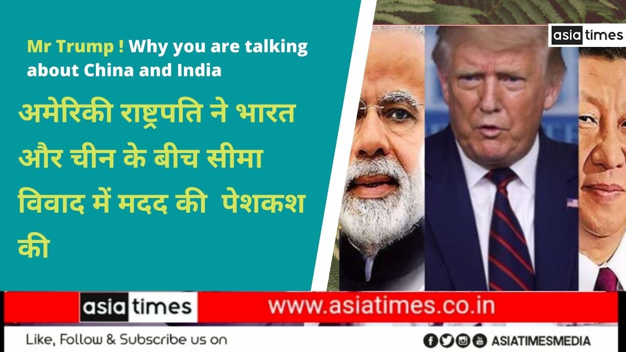 राष्ट्रपति डोनाल्ड ट्रंप ने शुक्रवार को कहा कि अमेरिका, पश्चिमी हिमालय की पर्वत सीमा पर भारत और चीन के बीच चल रहे विवाद को सुलझाने में मदद करने के लिए तैयार है। ट्रंप ने संवाददाताओं से कहा कि फिलहाद दोनों देशों के बीच स्थिति बहुत बुरी है। ट्रंप ने संवाददाताओं से कहा कि भारत और चीन की सेनाएं पहले से बहुत अधिक मजबूती से इस बार आमने-सामने हैं, जिसका कोई अंदाजा भी नहीं लगा सकता।
