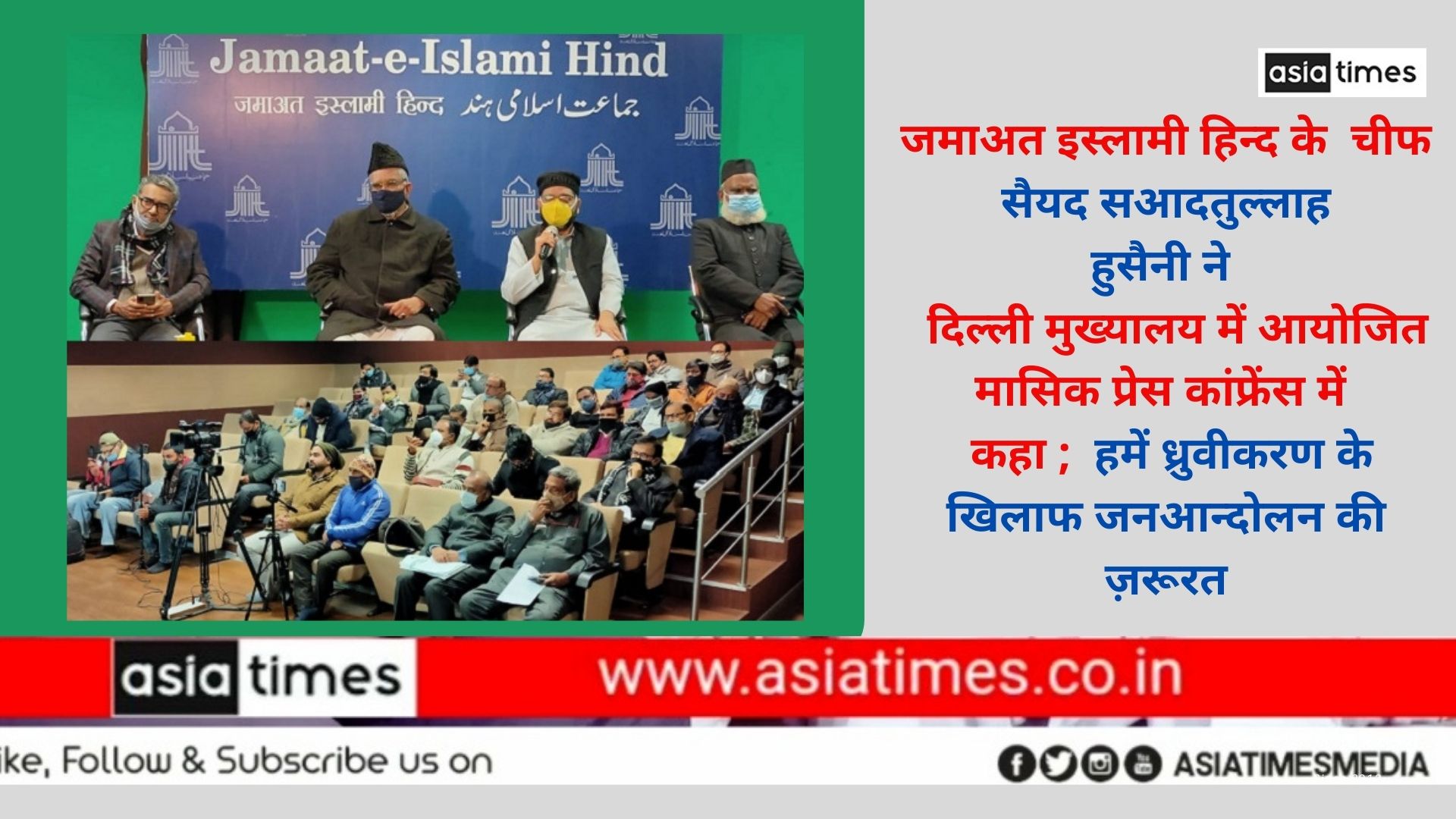 जमाअत इस्लामी हिन्द के चीफ सैयद सआदतुल्लाह हुसैनी ने दिल्ली मुख्यालय में आयोजित मासिक प्रेस कांफ्रेंस में कहा ; हमें ध्रुवीकरण के खिलाफ जनआन्दोलन की ज़रूरत है