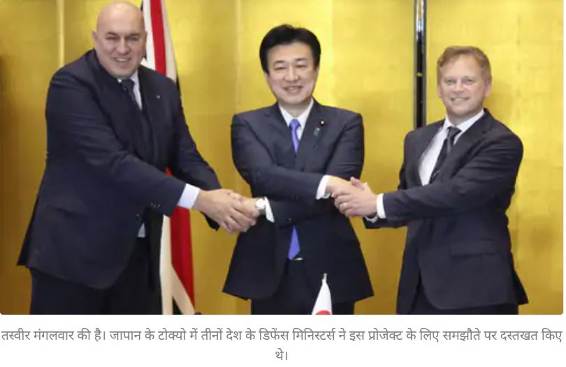 - ब्रिटेन के डिफेंस मिनिस्टर ग्रांट शार्प ने कहा- टोक्यो में मैंने जापान और इटली के डिफेंस मिनिस्टर्स के साथ ट्रीटी पर साइन किए। अभी सिर्फ इतना कहना चाहूंगा कि हम ग्लोबल सिक्योरिटी को पुख्ता करके के मिशन में जुट चुके हैं। इस प्रोजेक्ट का मकसद किसी पर दबाव बनाना नहीं है, हम तो अमन कायम रखने के लिए यह काम कर रहे हैं।
