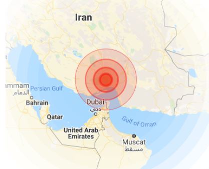 Abu Dhabi, United Arab Emirates के निकट 6.0 तीव्रता वाले भूकंप के झटके
